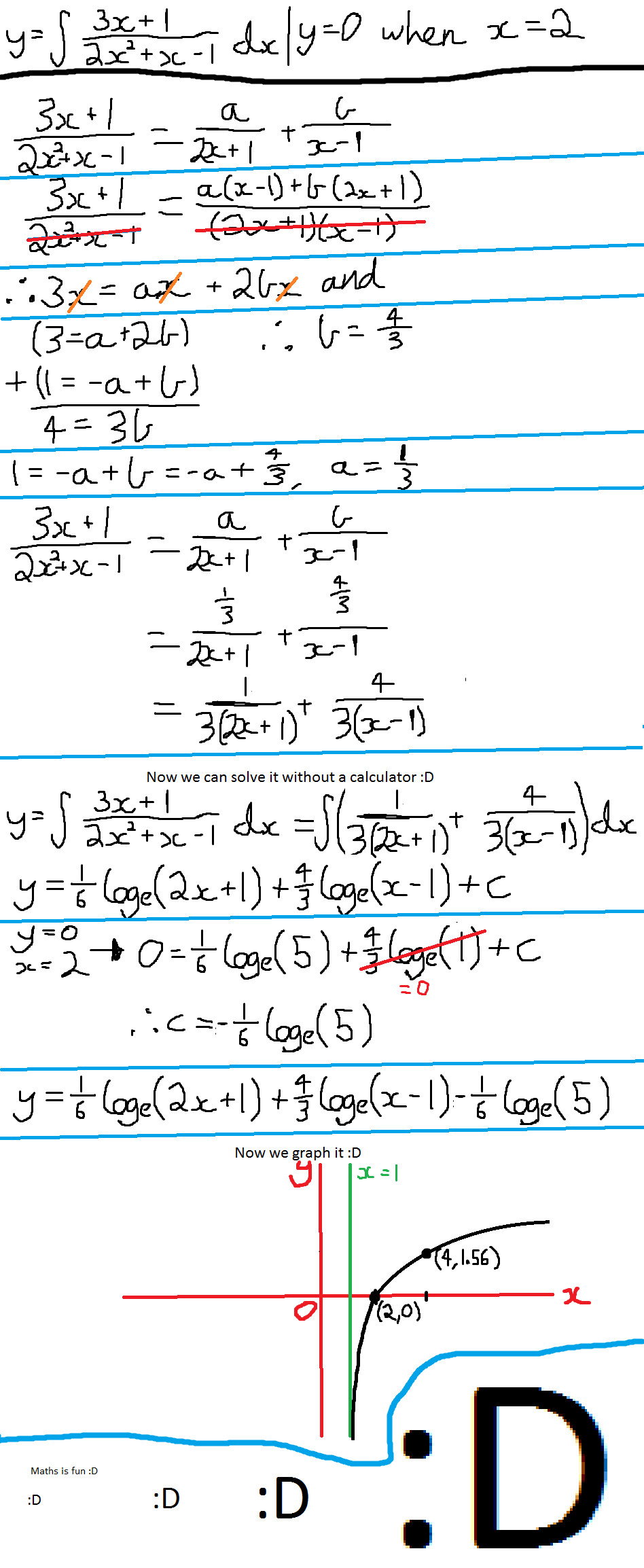 NOTE: I just realised that i forgot the 1 = -a + b on the line with the orange crossing out